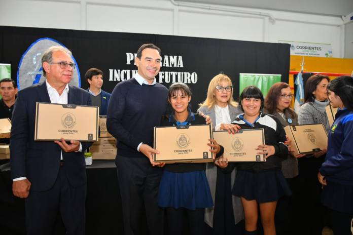 Con el firme objetivo acortar la brecha digital, brindar igualdad de oportunidades y fortalecer la educación pública, el gobernador Gustavo Valdés entregó esta mañana 726 notebooks de “Incluir Futuro” a alumnos de colegios secundarios capitalinos. El acto tuvo lugar en el Centro de Educación Física Nº 1 “Profesor Eduardo Robles”.