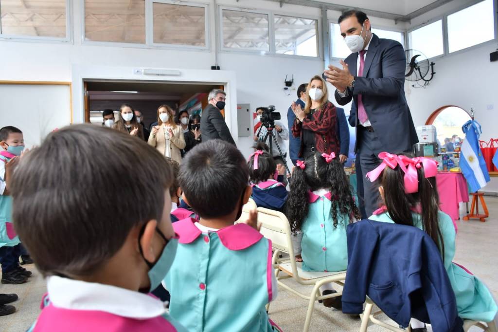 Valdés informó que se trata del tercer jardín inaugurado en el año, y recordó que se encuentra contiguo a la escuela inaugurada también en este 2021 por el Gobierno provincial, a pesar de los embates de la pandemia.