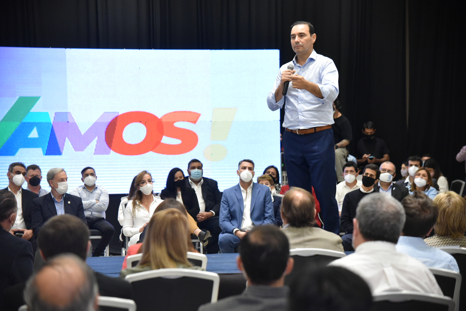 Luego, fue el turno de Braillard Poccard para seguir con la presentación de los casi 200 candidatos a intendentes que acompañan la reelección de Valdés en los más de 60 municipios que eligen este 29 de agosto sus autoridades. La mayoría de ellos estuvieron presentes en el lugar y otros a través de videoconferencia en grandes pantallas montadas en el salón. El cierre estuvo a cargo de Valdés,  con un discurso que llamó a dejar de lado diferencias para marchar hacia el desarrollo de la provincia.
