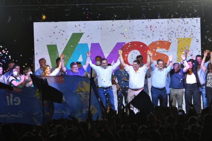 Este martes, el reelecto gobernador volvió a protagonizar una intensa jornada de campaña electoral como en días anteriores. Primeramente, al mediodía estuvo en la localidad de Santa Lucía y luego durante la tarde con una caminata por varios barrios libreños para concluir con un masivo acto en la Plaza del Bicentenario en esta última esta ciudad, donde se congregaron miles de vecinos junto a los militantes de los 32 partidos de ECO+Vamos Corrientes.