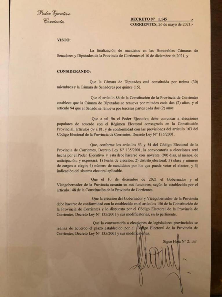 Gustavo Valdés firmó el decreto 1.145 a través del cual oficializó la convocatoria a elecciones a gobernador en Corrientes. Serán el 29 de agosto.
