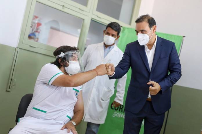 Y tal cual se estableció, el primer grupo de vacunación es el personal que se desempeña en el Hospital de Campaña, que son los que están en la primera línea de combate contra el Covid-19.