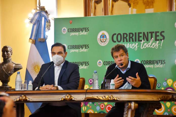 Luego, ambos se trasladaron al Salón Amarillo de Casa de Gobierno, lugar donde se desarrolló una conferencia de prensa, en la cual Valdés tomó la palabra para ofrecerle a Manes una “cálida bienvenida” en nombre del Gobierno Provincial, destacando que es “un lujo tenerlo en Corrientes”.