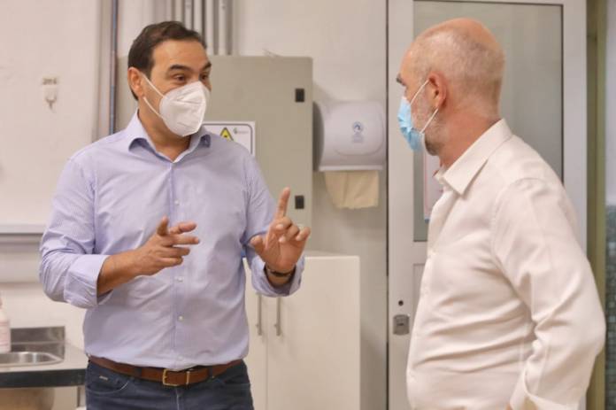 El gobernador Gustavo Valdés recorrió este viernes a la tarde junto al jefe de Gobierno de la Ciudad de Buenos Aires, Horacio Rodríguez Larreta, el Hospital de Campaña Escuela Hogar y luego se trasladaron por la RP 5 hasta la construcción del nuevo establecimiento penitenciario N° 1 en San Cayetano. Fue antes de firmar ambos un convenio en la Casa de Gobierno.