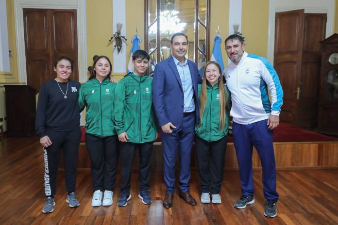 Por otro lado, también recibió a tres jóvenes correntinos que participaron de los campeonatos panamericano y sudamericano de levantamiento de pesas, Domingo Meza, Martina Giménez y Agustina Álvarez, quienes compitieron en Palmira, Colombia, donde lograron tanto una medalla de oro como una de bronce.