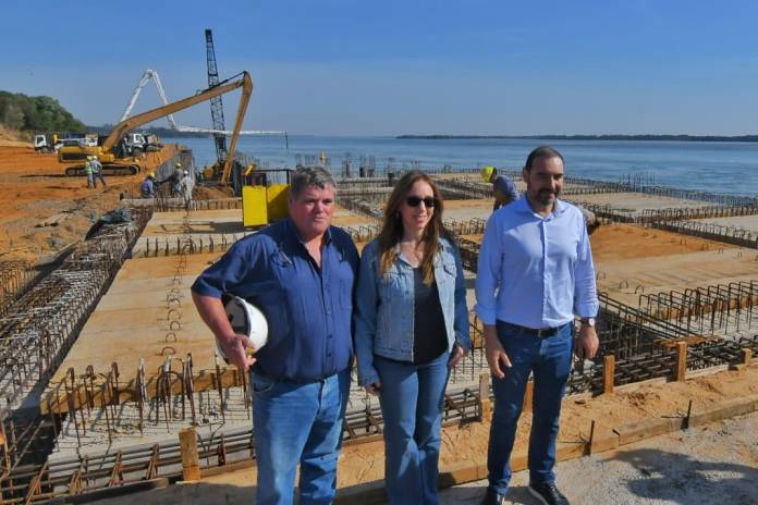 El gobernador de Corrientes, Gustavo Valdés recorrió este miércoles con la diputada nacional María Eugenia Vidal las obras del puerto que la provincia ejecuta en la localidad correntina de Ituzaingó. Allí el Mandatario provincial indicó que como parte de la misma alianza estuvieron con la legisladora que representa a la oposición al gobierno nacional, “amalgamando proyectos de desarrollo”, porque “la política tiene que estar concentrada en lograr puestos de trabajo”. Y sostuvo que, de esta manera, “nos estamos preparando para salir a construir una Argentina para todos y sin divisiones”.