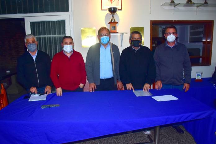 Yury Kordylas presidió la reunión del martes y –como estaba previsto- al finalizar llegó la comitiva integrada por el Dr. Eduardo Tassano, el secretario de Deportes de la Provincia, Jorge Terrille, y el sub interventor del INVICO, Mario Piñeiro.