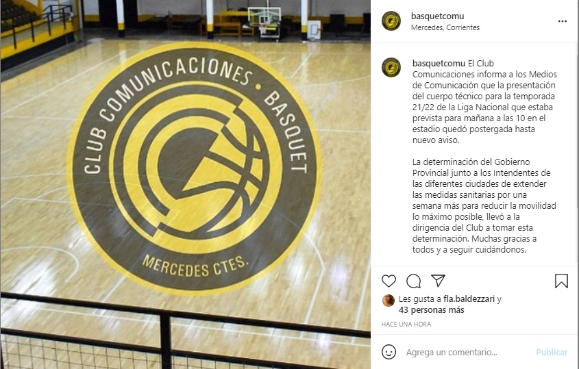 “El Club Comunicaciones informa a los Medios de Comunicación que la presentación del cuerpo técnico para la temporada 21/22 de la Liga Nacional que estaba prevista para mañana a las 10 en el estadio quedó postergada hasta nuevo aviso.