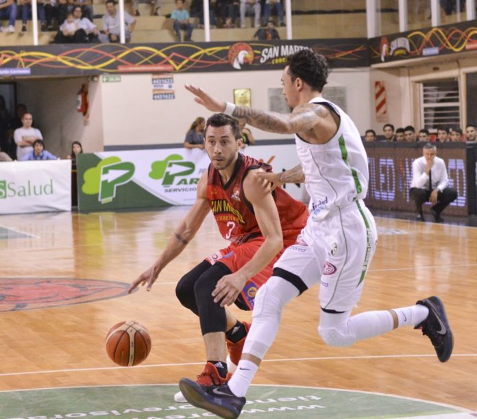 En el primer tiempo, los dirigidos por Sebastián González volvieron a tener que trabajar demasiado para corregir errores y ajustar defensas. La visita logró sacar diferencias iniciales (12-5) con el trabajo de Meyinsse en el poste bajo, pero San Martín reaccionó recién en el promedio del segundo cuarto y con un parcial de 9-0, clausuró los primeros veinte minutos con su máxima distancias hasta el momento (35-30) y la buena performance de Faggiano y Keenan.