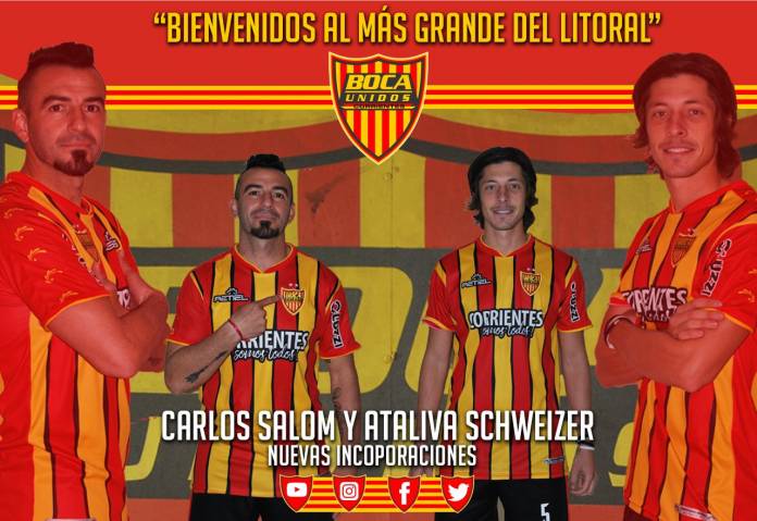 El volante central regresó al club luego de su paso por Villa Dálmine, en la primera nacional, y ante el pedido de la dupla técnica, firmó con Boca Unidos. Por su parte, el delantero Carlos Salom registra un último paso por la 4ta categoría de Italia, y hace un mes se entrenaba con el plantel.