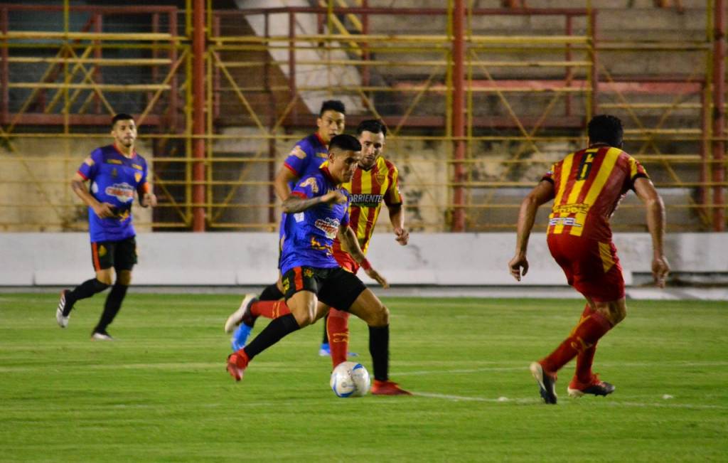 A los 7’, Gustavo Mbombaj recibió de Lucas Oviedo y probó desde unos 25 metros con un remate que se perdió al lado del palo derecho de Aquino. El local encontraba facilidades por la izquierda del ataque y era más profundo.