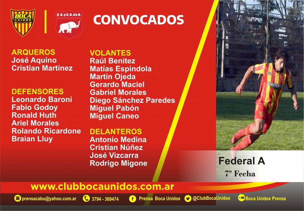 Boca Unidos (11 puntos) buscará encadenar su cuarta victoria este domingo cuando reciba a uno de los equipos de flojo inicio como Defensores de Villa Ramallo (4) que –incluso- mostrará el debut de su flamante entrenador Héctor Storti. Luego de cumplir con su suspensión de tres fechas por aquella expulsión ante Crucero del Norte, Cristian Núñez será el centrodelantero.