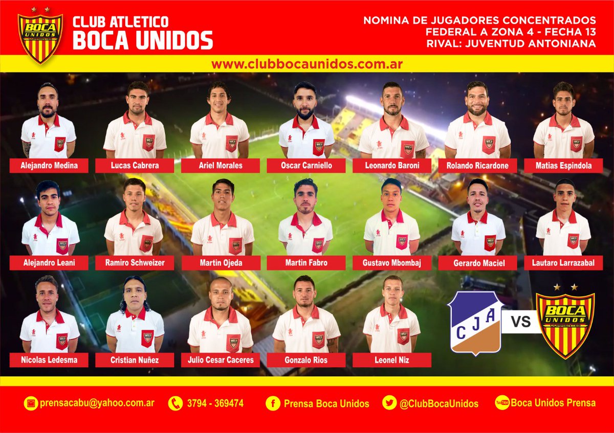 Boca Unidos trabajó esta mañana en su predio del barrio 17 de Agosto, ultimando detalles para su visita a Salta. En principio, regresarían los tres habituales titulares: Rolando Ricardone, Nicolás Ledesma y Cristian Núñez en lugar de Ariel Morales, Julio Cáceres y Gonzalo Ríos, respectivamente.