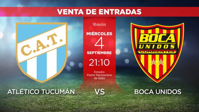 Atlético Tucumán y Boca Unidos de Corrientes se enfrentarán el miércoles 4 de septiembre desde las 21.10, en el estadio Padre Martearena de Salta, por los 16avos. de Final de la Copa Total Argentina. Así se desarrollará la venta de entradas para el encuentro que definirá al rival de Colón de Santa Fe en la próxima instancia del certamen.