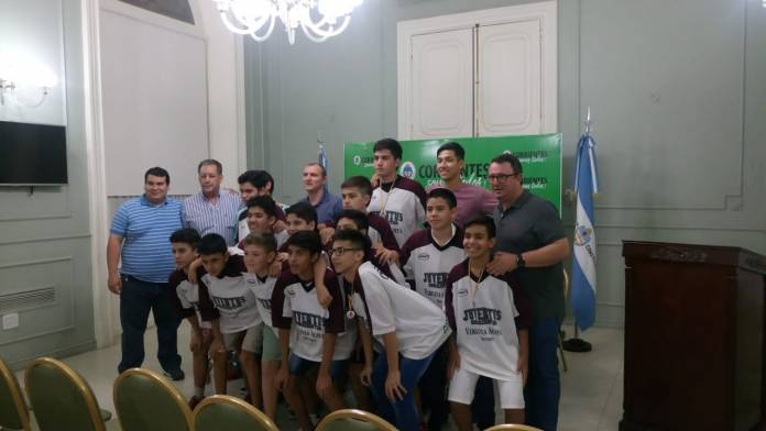 El equipo de Básquet categoría U13, del Club Juventus de la ciudad de Corrientes, pasó este lunes por la noche por Casa de Gobierno, donde fueron recibidos en el Salón Verde por el secretario de Deportes de la Provincia, Jorge Terrile.