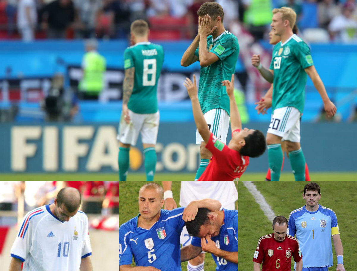 La selección alemana no es la primera que llegaba como campeona y se tuvo que despedir en la primera ronda aunque sí se dio su primera eliminación en fase de grupos. En los últimos 5 mundiales, 4 campeones no pasaron la ronda inicial.
