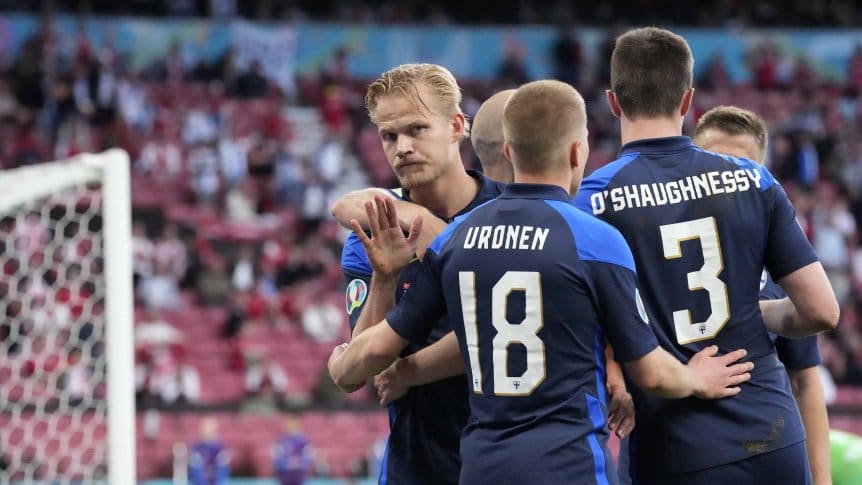 Tras la suspensión por el incidente que sufrió Christian Eriksen, quien se desmayó y tuvo que ser reanimado con maniobras de RCP en el campo de juego, Finlandia derrota 1-0 a Dinamarca en la fecha 1 del Grupo B de la Eurocopa.