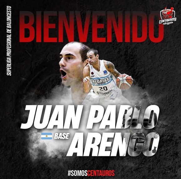 Juan Pablo Arengo, 26 años, es la tercera incorporación foránea del Centauros de Venezuela, de Guanare, estado de Portuguesa. El escolta ya había jugado en el exterior en año pasado cuando defendió los colores de Hurricanes de Cundinamarca, Colombia.