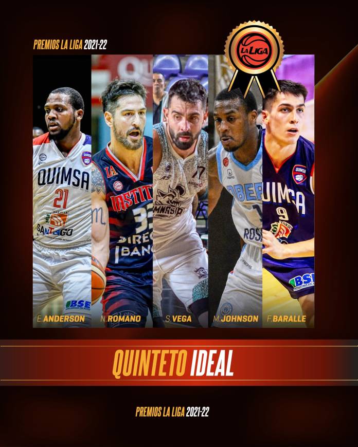 El “Quinteto Ideal” de la temporada regular de La Liga Nacional quedó conformado por Franco Baralle (Quimsa, 36,4%), Melvin Johnson (OTC, 50%), Sebastián Vega (Gimnasia, 45,5%), Nicolás Romano (Instituto, 68,2%) y Eric Anderson (Quimsa, 95,4%). Tres de ellos tuvieron sus respectivas y ya mencionadas distinciones individuales, mientras que Johnson demostró una enorme versatilidad y dinámica de juego (promedió 19.9 puntos) siendo uno de los grandes líderes que tuvo Oberá y Vega fue una vez más de los jugadores más completos (arrojó cifras de 13.7 tantos, 5.0 rebotes y 3.0 asistencias) que tuvo otro de los máximos animadores de La Liga como lo es Gimnasia de Comodoro.