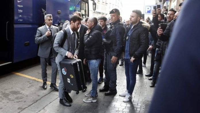Barcelona aterrizó este lunes en Nápoles, donde se enfrentará este martes al local por la ida de los octavos de final de la UEFA Champions League, y hubo un cálido recibimiento para Lionel Messi en la tierra que vio brillar a Diego Armando Maradona.