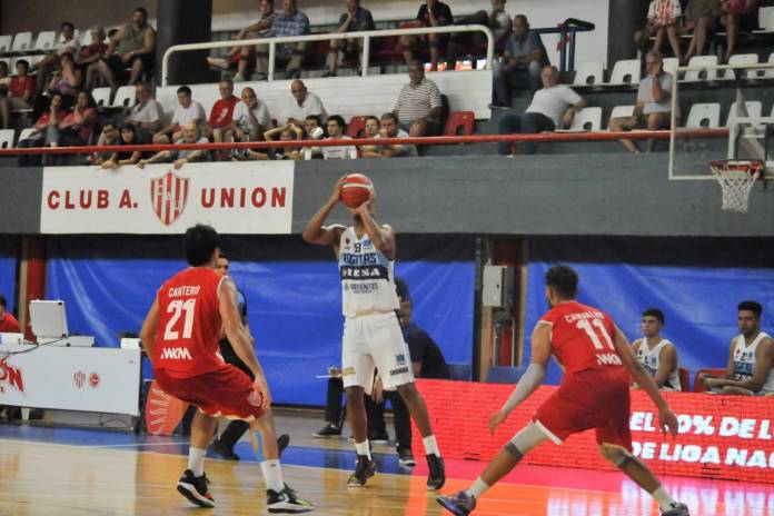 Unión arrancó el juego con soluciones en todos sus titulares, a pesar de cargarse rápidamente de infracciones. Regatas no pudo aprovecharse de ello, e intentaba mucho por la pintura porque faltaba fortuna en los lanzamientos. Hubo desde el inicio un duelo en la pintura entre “Nacho” Alessio -con una buena racha- y Mogga Lado, pero el mayor mérito de Unión fue incomodar a los dirigidos por Rivero, que no pudieron correr ni hacer pie en el primer tiempo. El local sacó una ventaja de 11 puntos en la mitad del segundo cuarto, y luego Regatas hiló un parcial de 12-6 que lo puso de nuevo en partido. Unión se sostuvo arriba al cierre con anotaciones del goleador del momento, Ayan Nuñez de Carvalho