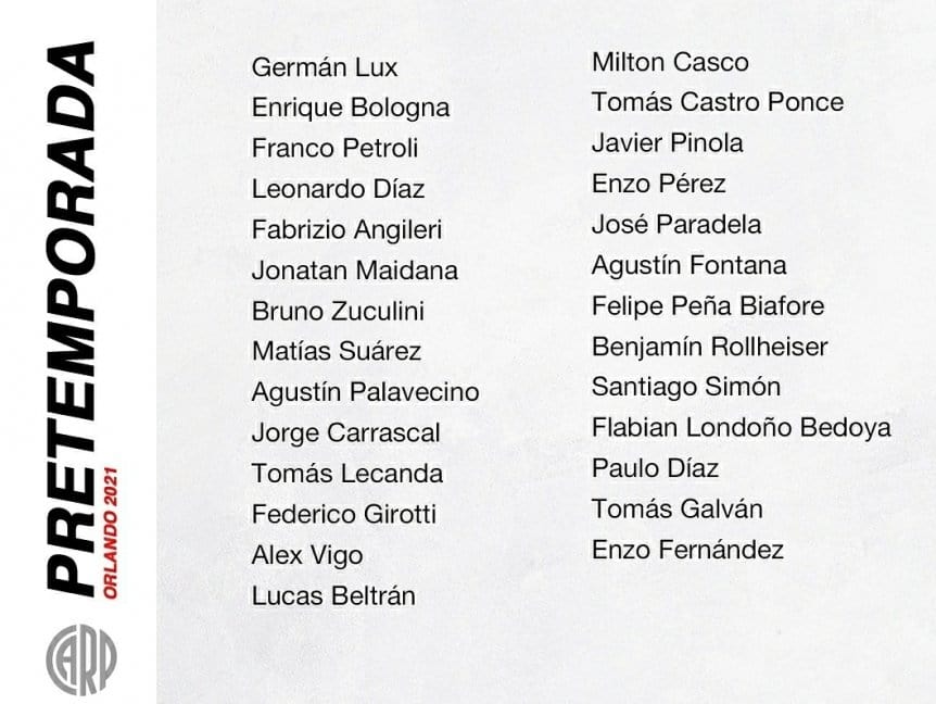 Tras su arribo a Estados Unidos, donde lo primero que hizo fue vacunarse contra el coronavirus, el plantel de River comenzó hoy con los trabajos de pretemporada en Orlando y en la primera práctica Marcelo Gallardo no pudo contar con dos de los juveniles: Tomás Lecanda y Felipe Peña Biafore.