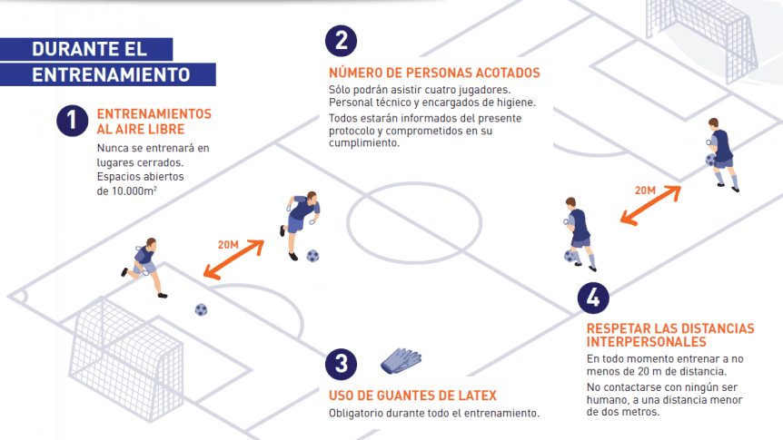Las actividades serán en grupos separados. Habrá un máximo de cuatro jugadores por turno. Siempre al aire libre (se usará el predio Amadeo Nuccetelli). Todavía no se sabe qué actividades se realizarán, pero se evitará cualquier tipo de contacto. Al retirarse, los miembros del plantel deberán tirar los elementos que usaron. Todo se descartará.