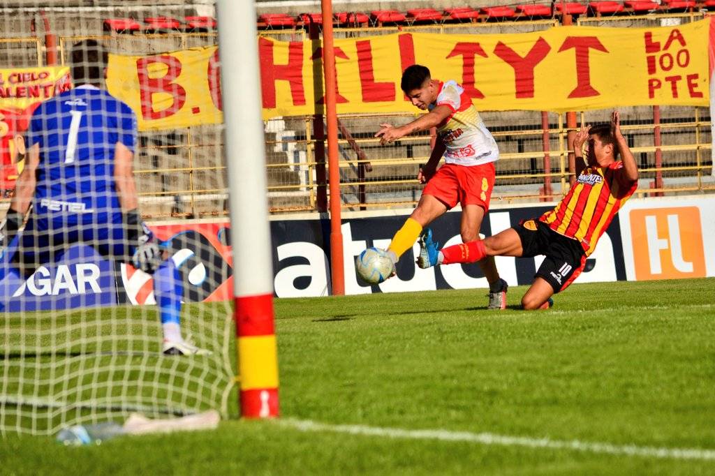 Luego, cuando Sarmiento apuraba, a los 32′ Leonel Niz llegó al fondo por la derecha, envió un centro para tratar de encontrar a Valsangiacomo pero Berlo -en su afán por despejar-, la clavó arriba, ante el asombro de su arquero Carrera.