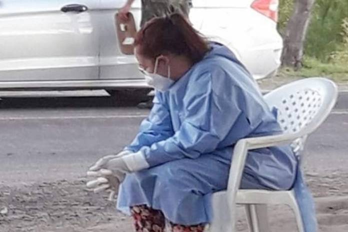 “Ahi fue que me senté, descanse un ratito, tome agua, me reemplazaron durante dos horas y volví a hisopar, y esa foto me tomaron alrededor de las 19 horas cuando no había más nadie a quien hisopar”, contó.
