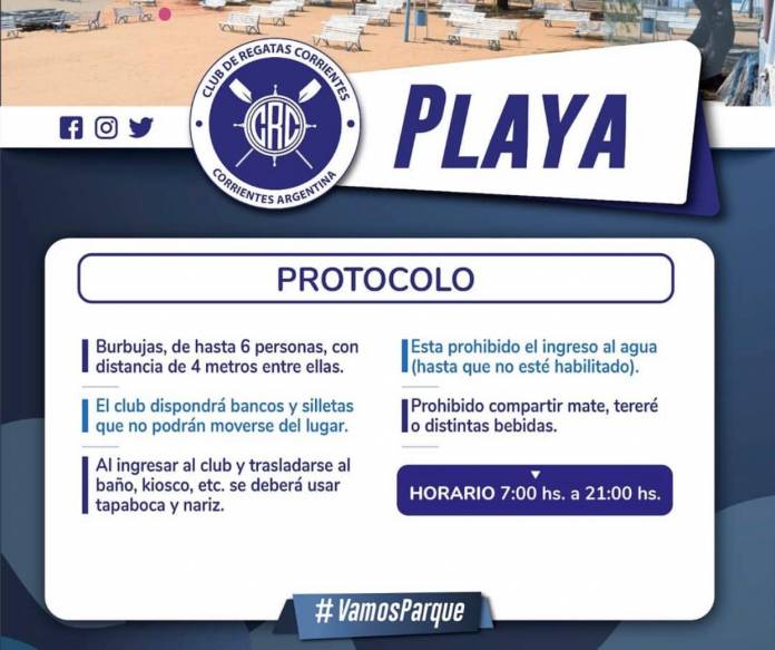 En comunicación con “Abierto a la Tarde”, Eduardo Mariño Rey capitán del Club de Regatas Corrientes, dio detalles de como se aplicará el protocolo en la playa del club correntino.
