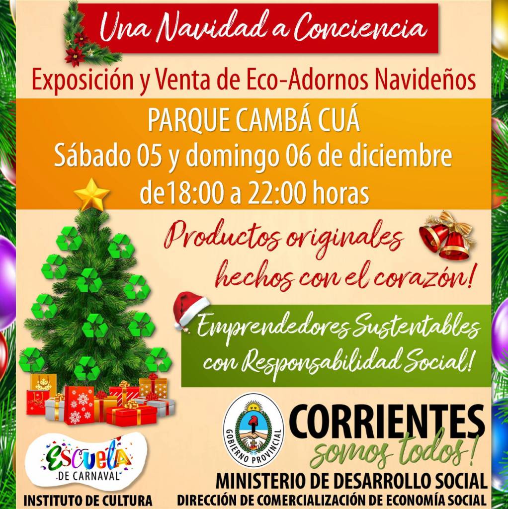 Al mismo tiempo, también contó que se organiza “Una Navidad a Conciencia” en el que los expositores correntinos presentaran “eco-adornos” para la venta. Este evento se realizará el sábado 5 y domingo 6 de diciembre de 18 a 22 horas en el Parque Camba Cuá. Serán productos originales, hechos con el corazón de emprendedores sustentables con responsabilidad social.