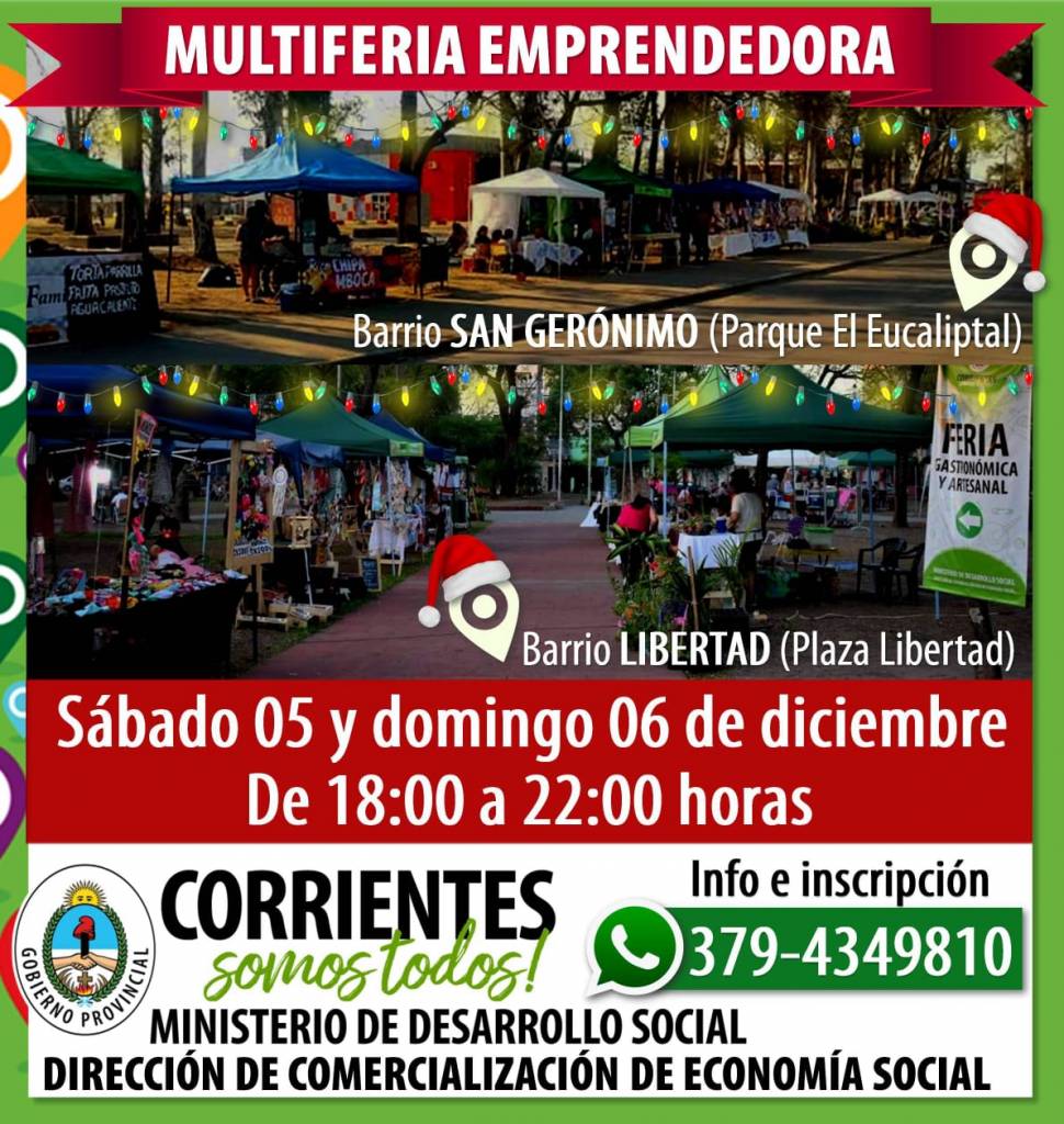 En comunicación con “Abierto a la Tarde” de radio La Red Corrientes 107.1, Débora Galarza, directora de Comercialización del Ministerio de Desarrollo Social, dio detalles de la realización de la Multiferia Emprendedora que se realizará el próximo sábado y domingo  de 18 a 22 horas en el Barrio San Gerónimo (Parque El Eucaliptal) y Barrio Libertad (Plaza Libertad).