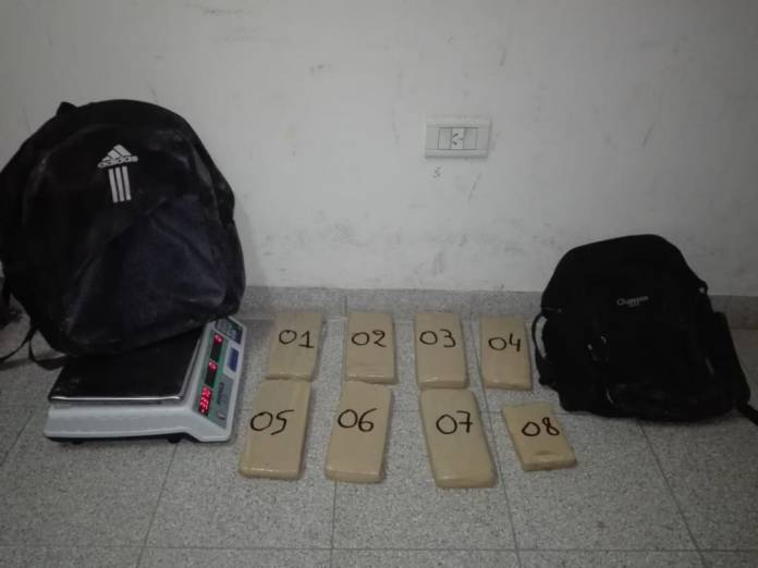 En una había 7 ladrillos de marihuana, que pesaron 4,545 kilos, y en la otra, una balanza electrónica digital.