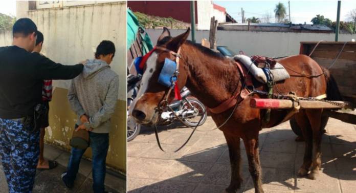 El procedimiento lo concretaron los citados policías, alrededor de las 13:30 horas, luego de tomar conocimiento a través del grupo de whatsapp, de alerta vecinal del barrio Jardín, que dos sujetos que circulaban en un carro tracción a sangre, sustrajeron materiales de construcción del interior de un terreno, y que los mismos se dirigían por calle Las Dalias.