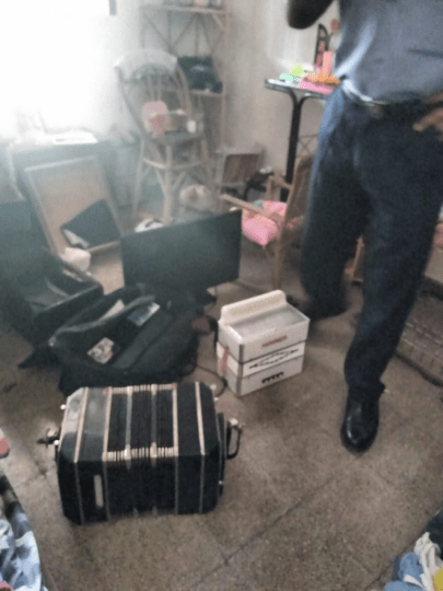 En el lugar, lograron hallar y recuperar un acordeón, un bandoneón y tres televisores que serían propiedad del joven chamamecero, en tanto que de dicho lugar también incautaron un casco de seguridad de importante valor que interesaría en otra causa de Cría 9na y además herramientas varias como ser; moladora, barreta, destornillador, martillo tipo mazo, entre otras cosas más, que podrían tener vinculación con hechos delictivos.
