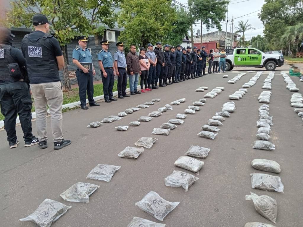 En la madrugada de hoy, efectivos de la Comisaría de distrito de Caa Cati, pertenecientes a la Unidad Regional Uno y al Destacamento Ensenada Grande de Drogas Peligrosas, realizaron un minucioso rastrillaje en el tramo de la ruta provincial 13, donde encontraron diez bultos abandonados entre las malezas y a la vera del camino. Estos bultos contenían una gran cantidad de marihuana, equivalente a 156 kilos. La investigación sugiere que este cargamento podría tener relación con una persecución previa que se llevó a cabo en la madrugada de ayer.