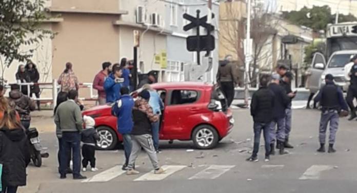 El hecho ocurrió este jueves por la mañana, cuando la mujer que conducía el automóvil Fiat color rojo, intentó adelantarse a un grupo de manifestantes que venían por avenida Alberdi y tras un intercambio de palabras, destruyeron el rodado a ladrillazos.