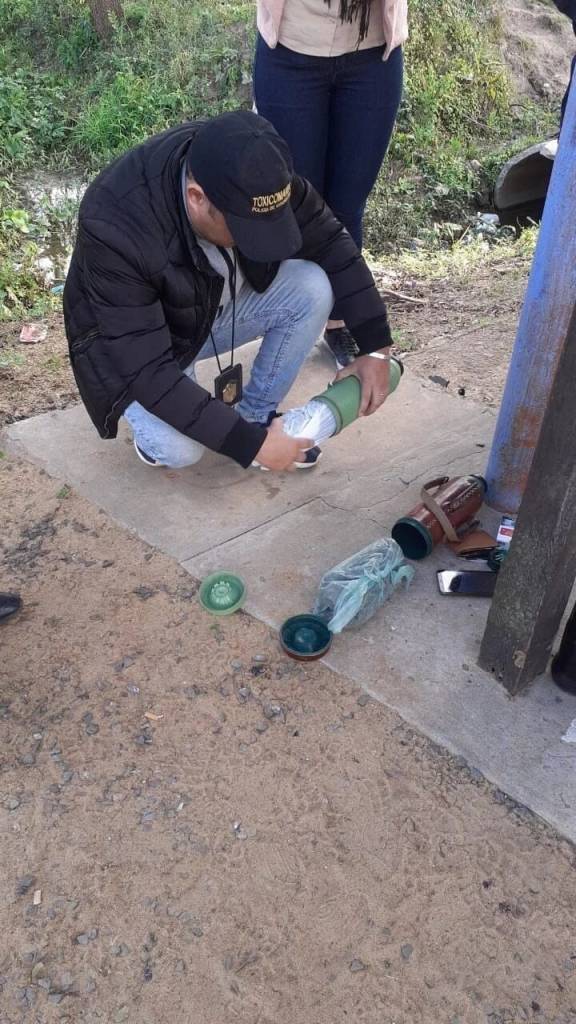 Al detener la marcha de la moto, los efectivos notaron que los termos no contenían agua.