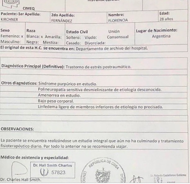 Según anunció, Cristina Kirchner presentará este viernes en Tribunales los certificados médicos de la cineasta, donde se constata el diagnóstico de su salud tras los estudios que realizó en la capital de Cuba.