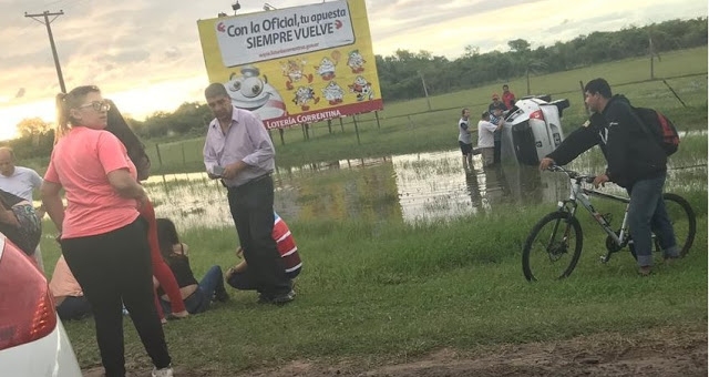 Un automóvil volcó frente al Club San Patricio sobre la Ruta Nacional 12. En el rodado se trasladaban una mujer, identificada como Ingrid Porta, junto a tres menores, su hija de 7 años y otros dos menores de 5 y 8 años.