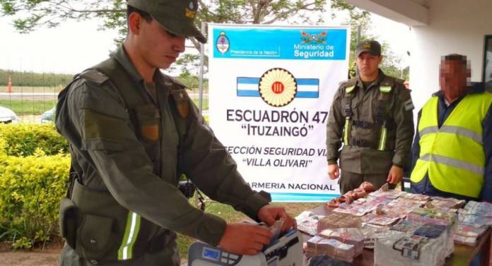 Gendarmería Nacional, dependiente del Ministerio de Seguridad de la Nación, decomisó 1.600.000 pesos argentinos, transportados en distintos sectores de un rodado y adosado al cuerpo del conductor. El hecho tuvo lugar en la provincia de Corrientes.