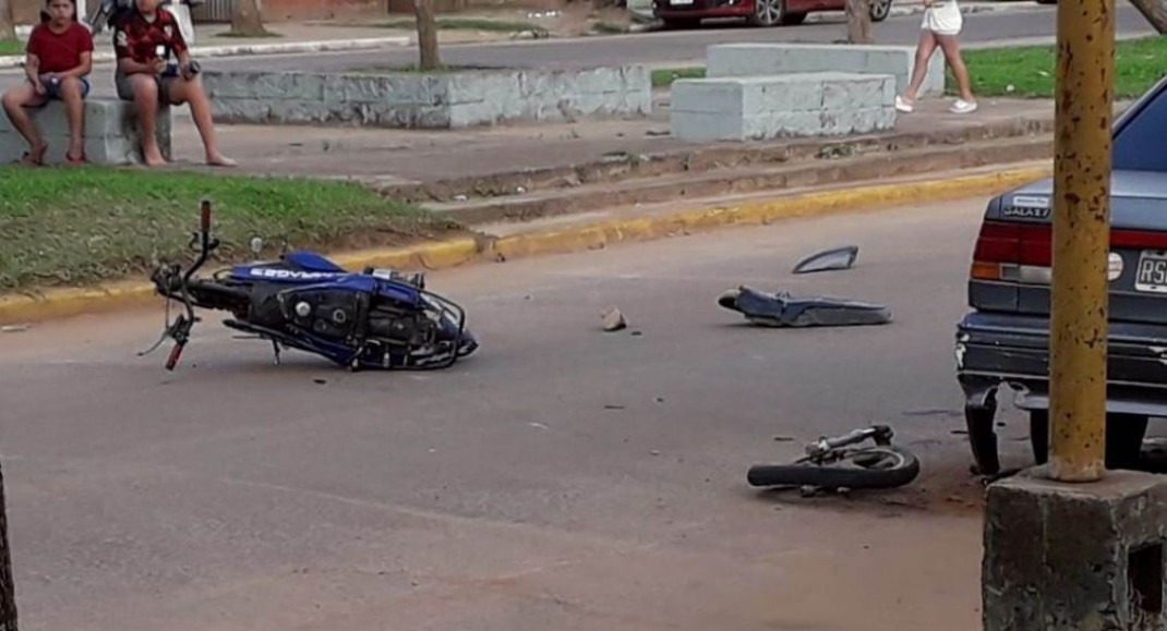 Ayer por la tarde, dos jóvenes se accidentaron con la moto por Av. Perón (continuación Cazadores Correntinos) y calle Trento.