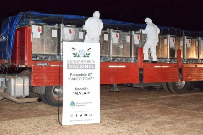 Gendarmería Nacional incautó nueve toneladas de acetato de etilo que eran trasladados en un camión, informaron este lunes desde la fuerza. El valor del material químico asciende a 28.300.000 pesos.