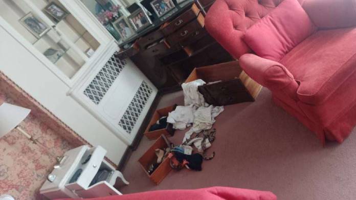 En las fotos incorporadas a la causa, sin embargo, se observa las cajas embaladas que tenían objetos guardados de la mudanza, pero también queda en evidencia el desorden del living de la vivienda, en la cual hay un sillón dado vuelta y vestimenta dispersa en el suelo.