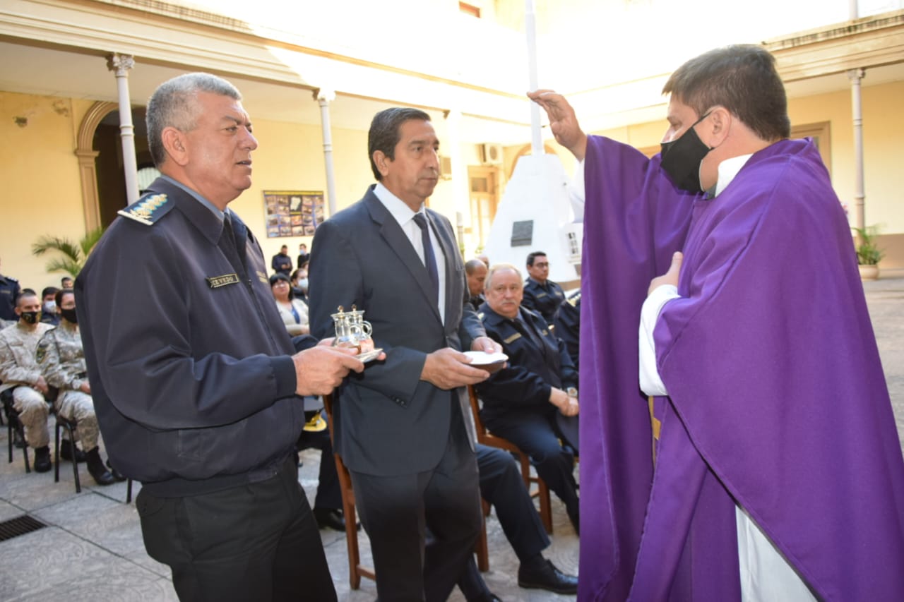 La misma estuvo oficiada, por el Capellán de la Institución Policial Oficial Auxiliar Presbítero Guillermo Danuzo, contando con la presencia del Señor Ministro de Seguridad Dr. Buenaventura Duarte, el Jefe de Policía