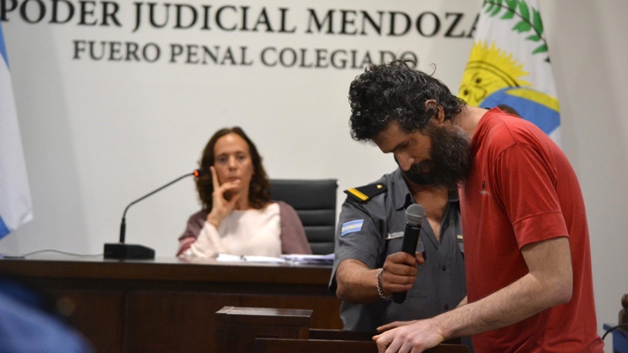 Vestido con una remera roja y la mirada hacia el suelo, Pereg ingresó minutos antes de las 13 a la sala de audiencias del Polo Judicial de Mendoza, que no pisaba desde el primer día del debate, el 26 de octubre pasado, cuando fue desalojado por maullar sin parar.