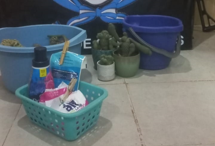 Durante la demora, se encontraron en el poder del hombre tres baldes que contenían plantines de tuna, que habían sido sustraídos del interior de uno de los domicilios. La Policía investigó que se trataba de un robo a un hogar en ese lugar.