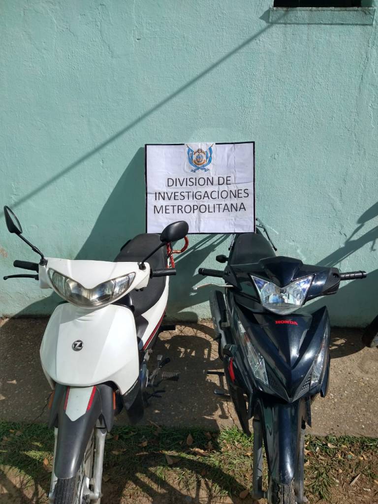 Efectivos Policiales de la División de investigaciones de la Dirección de Seguridad Metropolitana, gracias a la labor investigativa efectuada, lograron hallar y recuperar dos motocicletas que fueran denunciadas como sustraída días atrás.