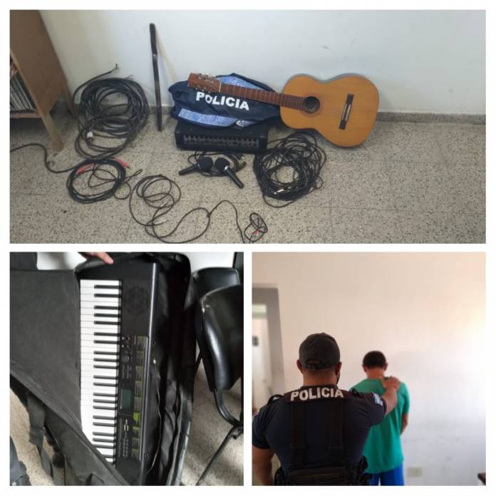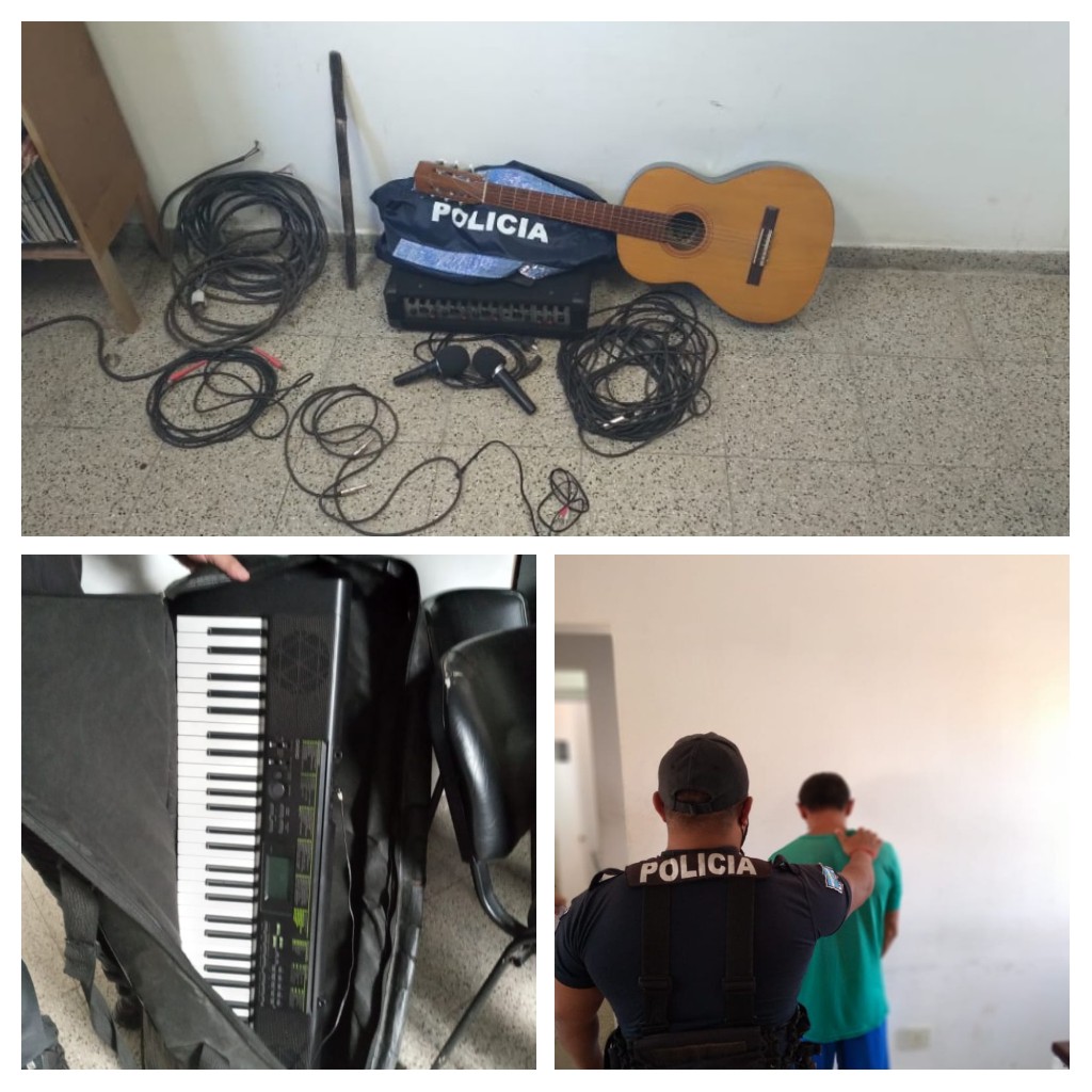 El procedimiento lo concretaron los citados efectivos, tras tomar conocimiento, a raíz de una denuncia formulada días atrás, donde personas desconocidas previo a violentar una de las ventanas habían ingresado a una Iglesia de congregación Cristiana, ubicada por calle Avenida Pujol de esa Localidad, y sustrajeron una consola, un amplificador, un micrófono, transformador eléctrico, un órgano musical, una guitarra criolla, una bandeja electrónica, un agarrafa de 10 Kgs, entre otras cosas.