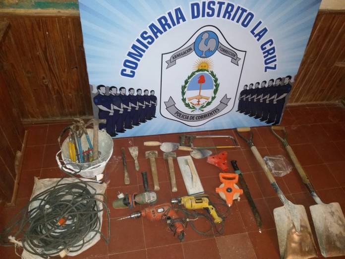 El procedimiento, lo llevaron a cabo luego de efectuar distintas diligencias investigativas que se dieron inicio inmediatamente después de tomar conocimiento del hecho y las cuales los llevó hasta un descampado existente en la zona, lugar donde hallaron y secuestraron todos los elementos denunciados como sustraído, como ser: un taladro; palas, tenazas; mazos; cucharas de albañil; prolongadores de 15 y 12 metros; plomada de albañil; fratachos;) destornilladores y un picaporte, entre otras cosas.